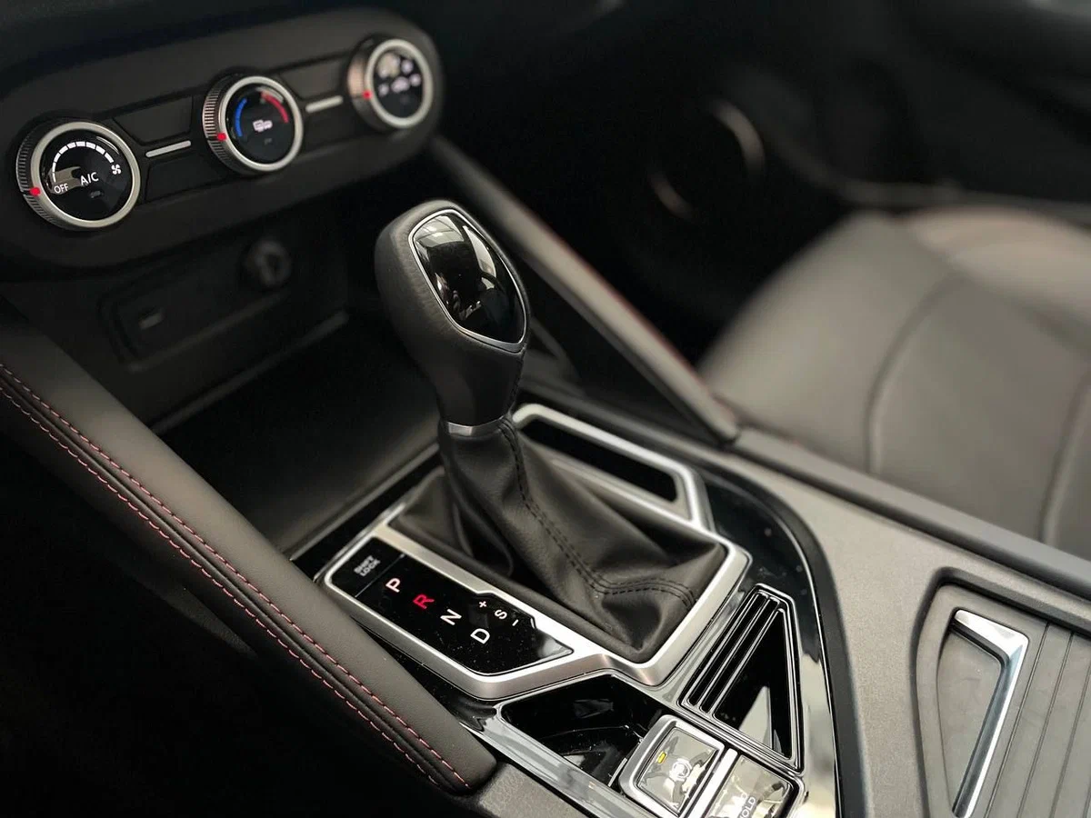 | Отделка сидений экокожей черного цвета с красной прострочкой |